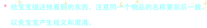 借助寶寶熟悉的活動(dòng)和物品,向他提問題或者下指令,比如指著小貓問“這是什么”,指著蘋果下指令“把蘋果給媽媽”,注意提問或下指令不要超出他的能力范圍。