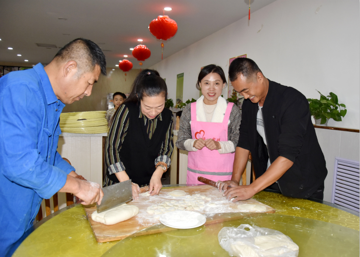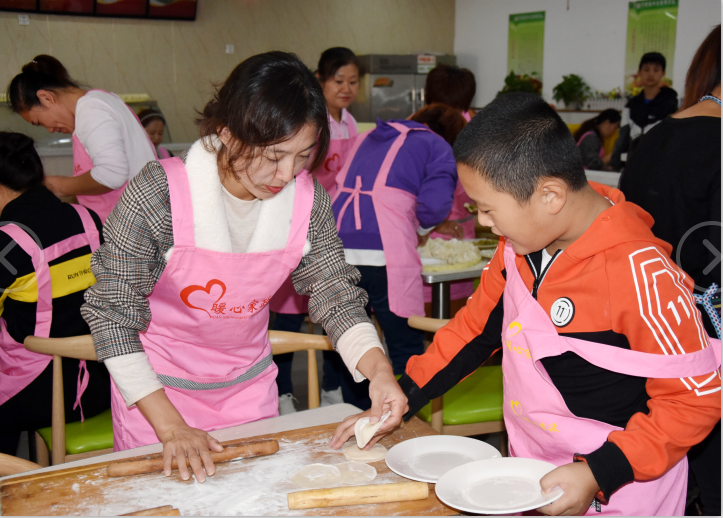 有些大姐還帶了自己家的孩子一起參加這次公益活動(dòng),以身作則,以實(shí)際行動(dòng)教育孩子們尊老愛(ài)老。孩子們也非常活躍,不管是包餃子還是搟皮,都積極參與。