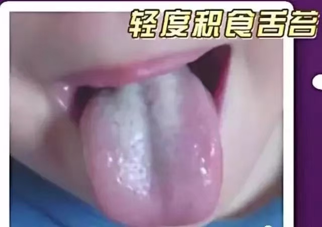 但是如果小寶寶積食了,舌苔就會反應(yīng)出來問題。如下圖: