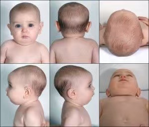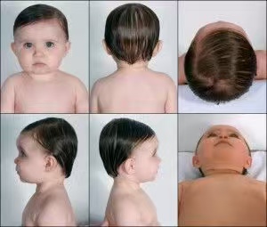 不難發(fā)現(xiàn),正常情況下,嬰兒的頭比較圓,頭型比較對稱,整個頭型比較自然,有明顯的后腦勺。