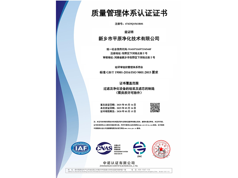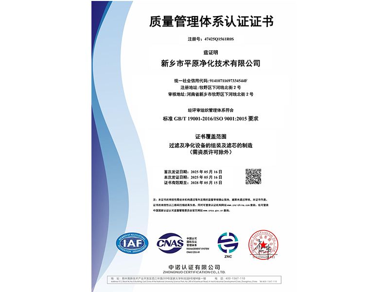 質(zhì)量管理體系認證證書